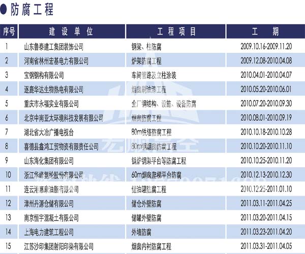 宏順建設工程有限公司是國家批準成立的專業高空作業企業:承攬過(國內.國外)煙囪新建、煙囪防腐、吊機防腐、水塔防腐、管道防腐、龍門吊防腐、儲存罐防腐、煙囪內壁防腐等高空作業工程。具有“不搭腳手架 、 不需要停產”施工特點。